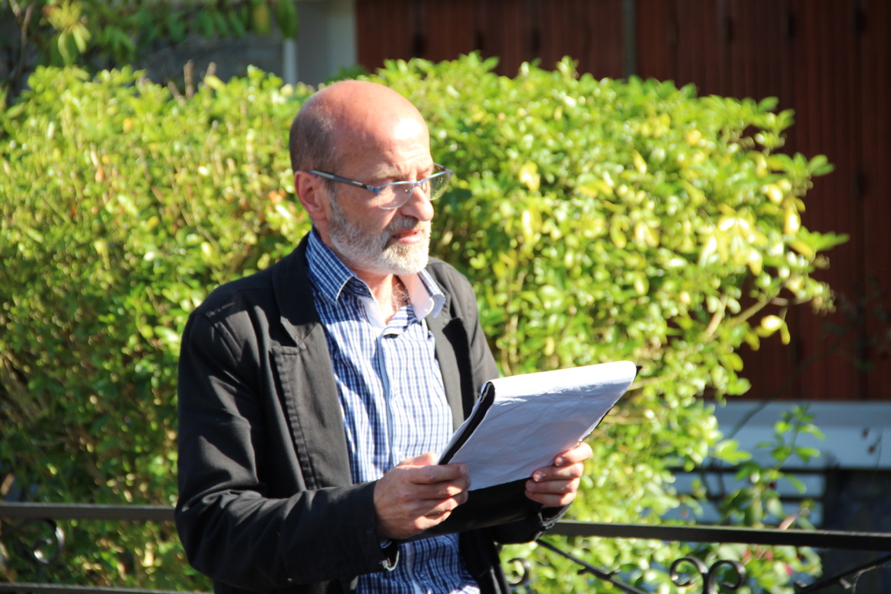Bon, pas trop besoin de lire les notes. C’est moi qui ai écrit le texte des visites. Ils m’ont dit de le faire comme il n’y avait plus de public à la bibliothèque. Le maire m’a donné carte blanche pour répertorier les endroits remarquables de la commune. Alors j’ai voulu faire connaitre une petite oeuvre de rien du tout qui émeut autant qu’une grande oeuvre à la renommée internationale comme la maison post-contemporaine. J’ai écrit une note sur ce petit parterre parce je l’adore. C’est Lolo qui l’a réalisé. Regardez. C’est beau. C’est très émouvant, n’est-ce pas ? C’est l’étant en son entier qui a éclos dans ces plantes. Comme a écrit Heidegger « la beauté est un mode de séjour de la vérité en tant qu’éclosion ».
